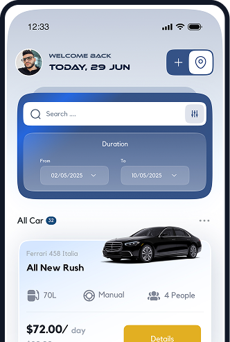 اختر سيارتك، احجز على الفور وانطلق إلى الطريق - كل ذلك من خلال تطبيق سهل الاستخدام